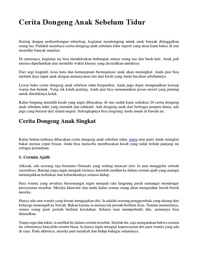 Teks Dongeng dan Teks Anekdot. Dengan membaca dongeng cerita pengantar tidur secara tidak langsung akan membantu pembentukan karakter dalam tumbuh kembang anak. Oleh Dosen Pendidikan 2 Diposting pada 05082021.