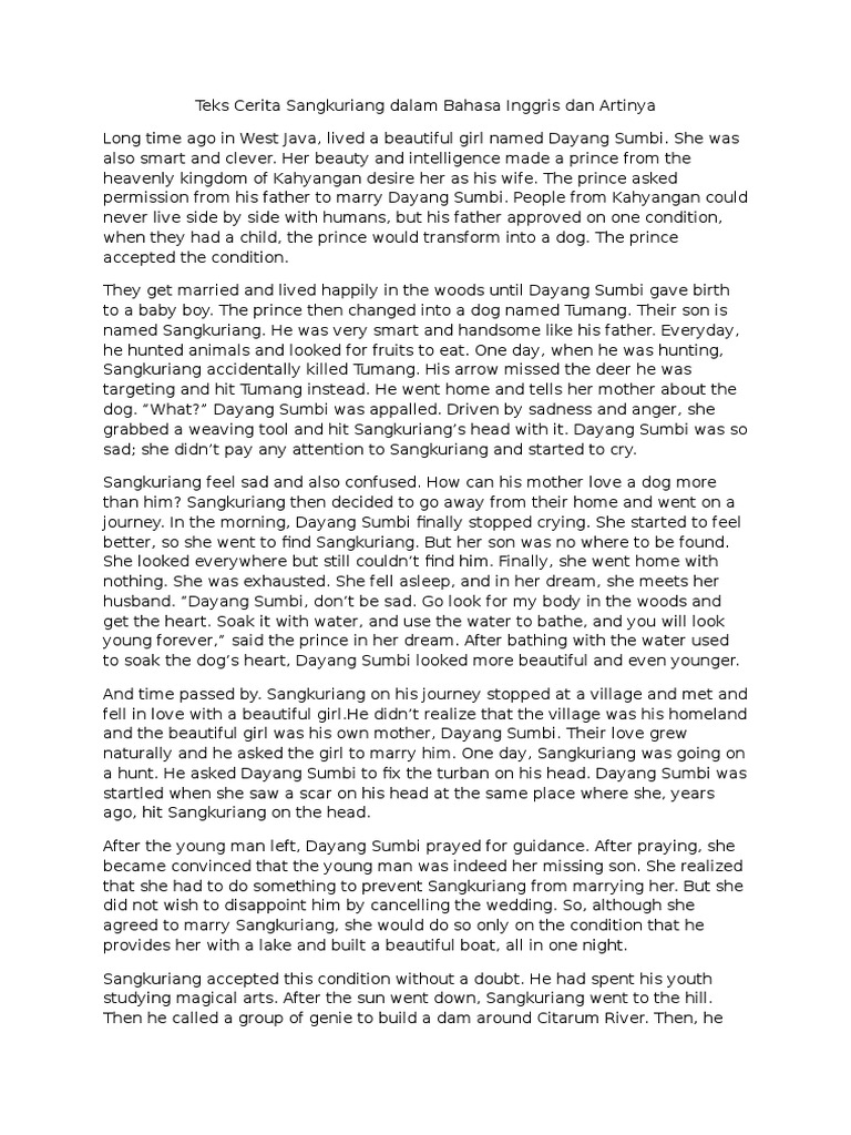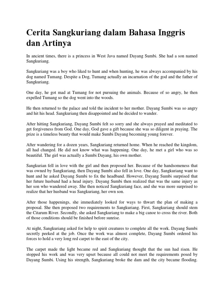 Teks Cerita Sangkuriang Dalam Bahasa Inggris Dan Artinya Pdf