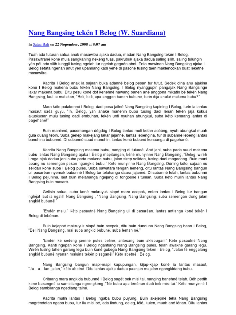 Terima Kasih dan Selamat Membaca. Cerita ini menjadi satu set dari sikap perilaku dan nilai-nilai yang dimiliki masyarakat Indonesia yang. Disubane maan meli bebek lantas I Belog mulih.