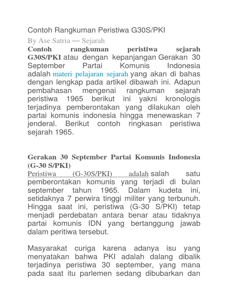 Kronologis Singkat Sejarah G-30 S. Cerita singkat peristiwa g 30 s pki dan penumpasannya - 14852890 1. Peristiwa G 30SPKI Ringkasan Peristiwa G 30SPKI yang lebih dikenal dengan peristiwa pemberontakan yang dilakukan PKI bertujuan untuk menyebarkan paham.
