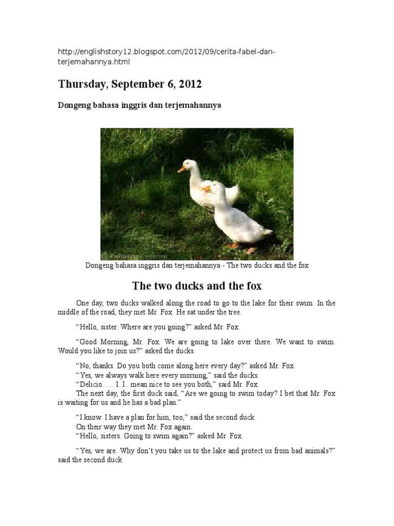 Kumpulan Cerita Fabel Bahasa Inggris Dan Terjemahannya Inirumahpintar Com
